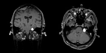 Meningeomer i den cerebellopontine vinkel giver som nævnt næsten samme symptomer som acusticusneurinomer og bliver derfor ofte i første omgang – efter en MR-skanning – diagnosticeret som et acusticusneurinom.