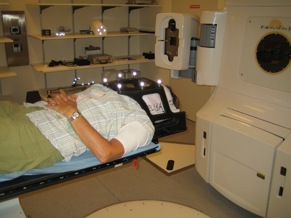 For at kunne bestråle knuden helt præcist bliver der lavet en personlig maske, som spændes fast til underlaget, så hovedet ligger på nøjagtigt det samme sted ved hver eneste behandling.